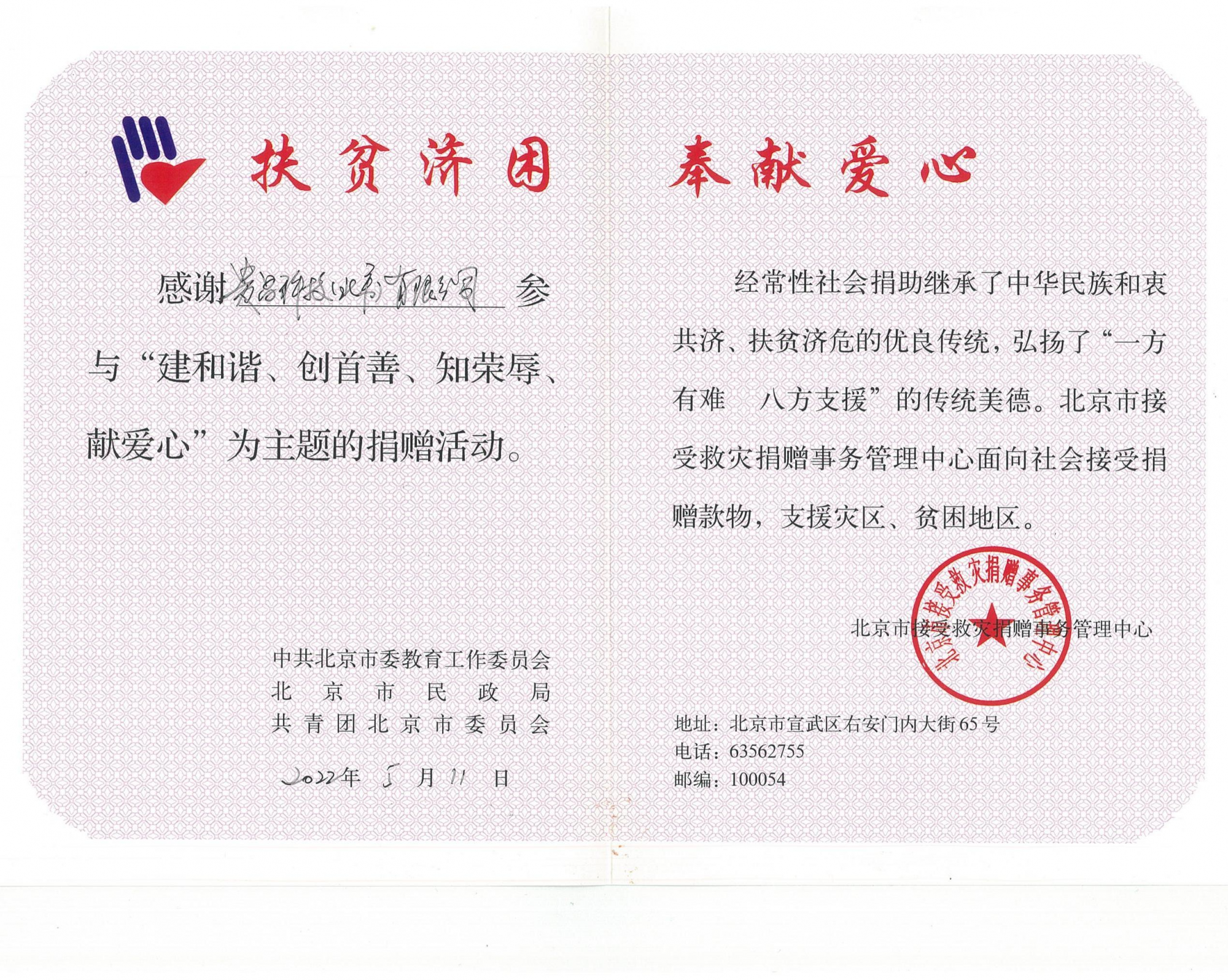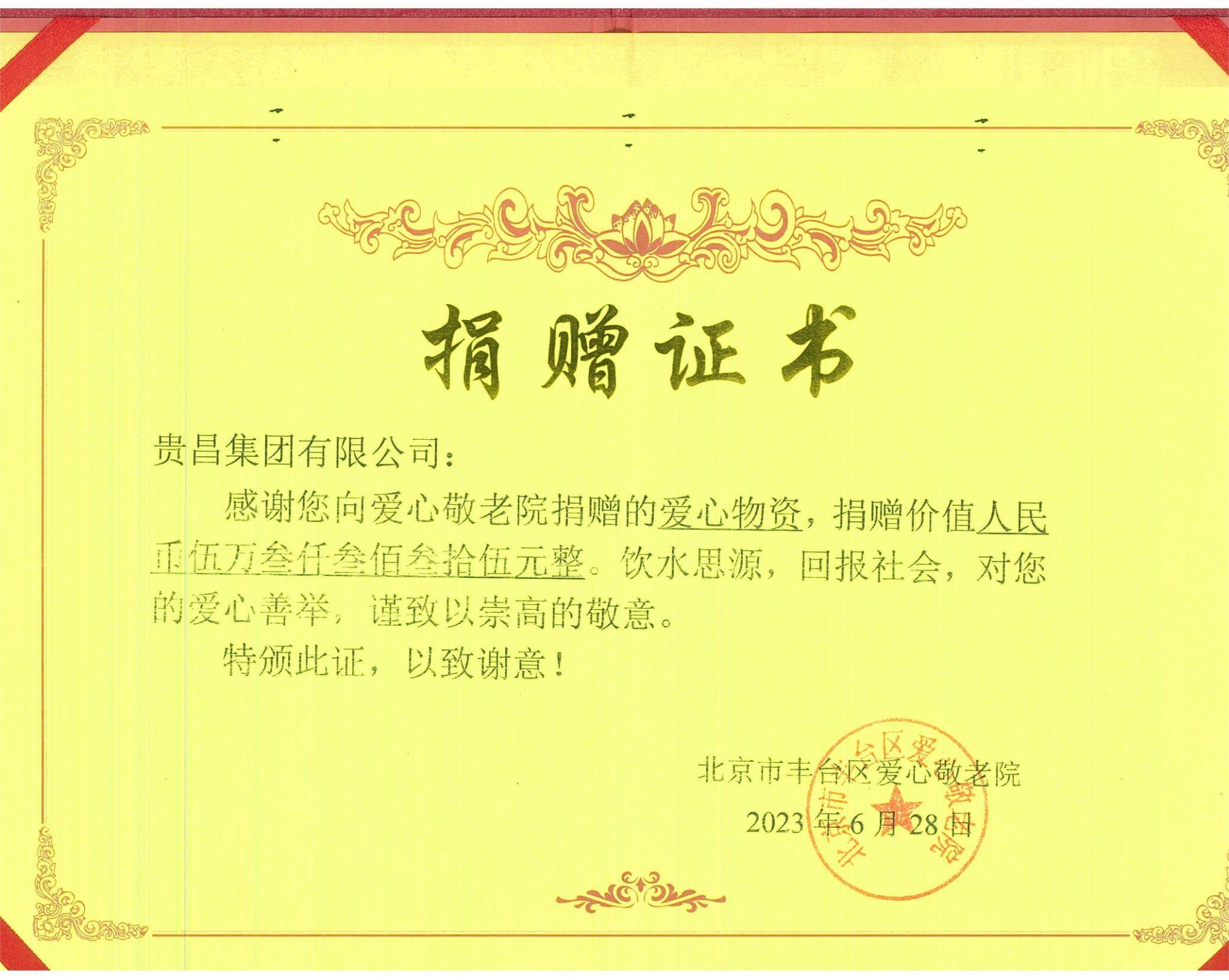 慈善公益、助力夕陽,捐贈(zèng)北京市豐臺(tái)愛心敬老院物資53335.00元;