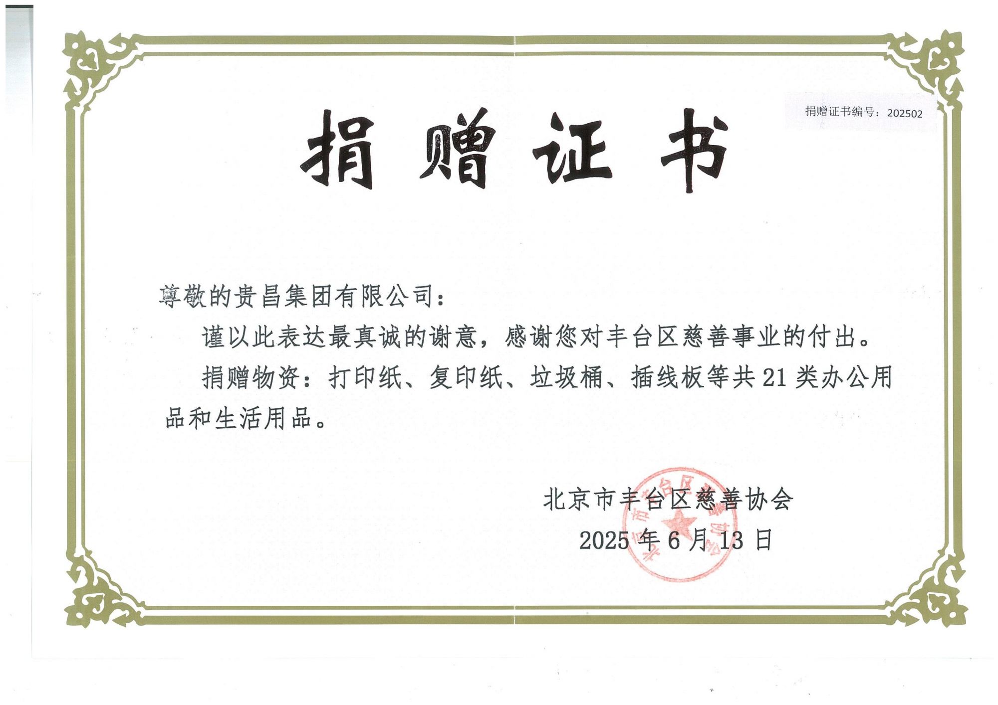 支持豐臺(tái)區(qū)慈善助殘事業(yè),捐助豐臺(tái)區(qū)溫馨精康園物資431886.78元;
