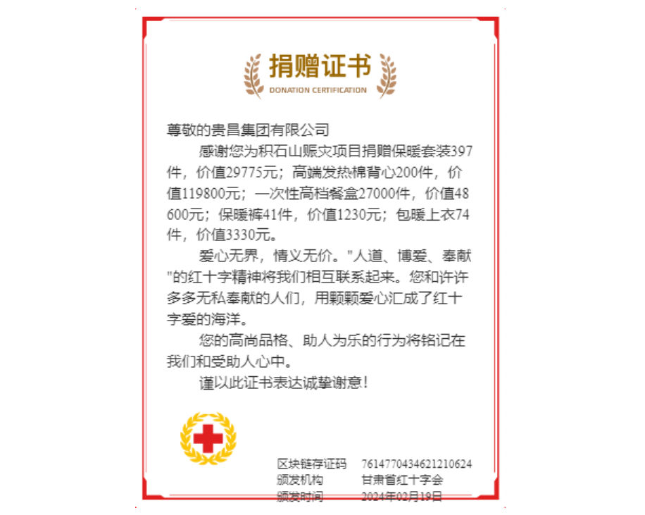 捐助甘肅省紅十字會(huì)積石山賑災(zāi)項(xiàng)目物資202735.00元;
