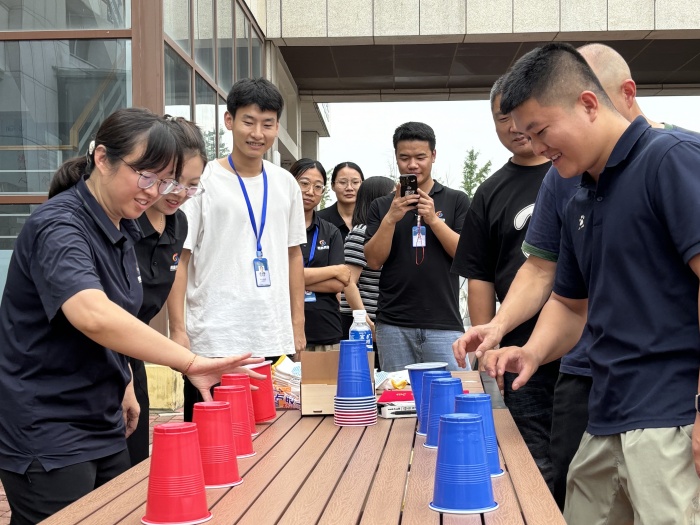 協(xié)作游戲環(huán)節(jié)更是趣味滿滿。“吃西瓜”考驗(yàn)配合,吃瓜者與喂瓜者默契聯(lián)動,賽場滿是歡鬧;“翻杯子挑戰(zhàn)”比拼速度,各隊(duì)爭分奪秒;“拔河比賽”點(diǎn)燃熱血,分組對抗中,團(tuán)隊(duì)向心力瞬間拉滿。