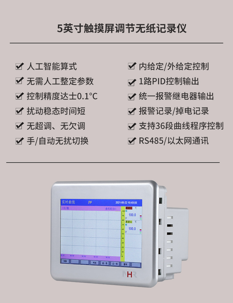 虹潤公司是專業(yè)生產(chǎn)無紙記錄儀的國家專精特新“小巨人”企業(yè)。生產(chǎn)的觸摸屏調(diào)節(jié)無紙記錄儀,具有觸摸大屏顯示,真正人工智能算式,無需人工整定參數(shù),控制精度達(dá)士0.1°C,數(shù)據(jù)記錄與轉(zhuǎn)存, RS485/以太網(wǎng)通訊,5/7/9英寸可選等特點(diǎn)。產(chǎn)品獲得智能化控制器、人工智能調(diào)節(jié)器及調(diào)節(jié)方法、模糊PID控制儀及控制方法、平板無紙記錄儀、巡回檢測顯示方法及裝置等5項(xiàng)國家發(fā)明專利,主持起草物聯(lián)網(wǎng)智能記錄儀表通用技術(shù)條件、物聯(lián)網(wǎng)智能溫度儀表通用技術(shù)條件、工業(yè)過程測量和控制系統(tǒng)用智能調(diào)節(jié)器等3項(xiàng)國家標(biāo)準(zhǔn),通信系統(tǒng)多通道數(shù)據(jù)采集控制終端規(guī)范軍用標(biāo)準(zhǔn),以及空間數(shù)據(jù)與信息數(shù)據(jù)傳輸系統(tǒng)等2項(xiàng)航天標(biāo)準(zhǔn),參與國際5G標(biāo)準(zhǔn)制定,取得觸摸屏彩色調(diào)節(jié)無紙記錄儀等3項(xiàng)相關(guān)軟件著作權(quán)。產(chǎn)品廣泛應(yīng)用于電力、石化、冶金、化工、食品、制藥、熱處理、水處理、機(jī)械配套等諸多領(lǐng)域。