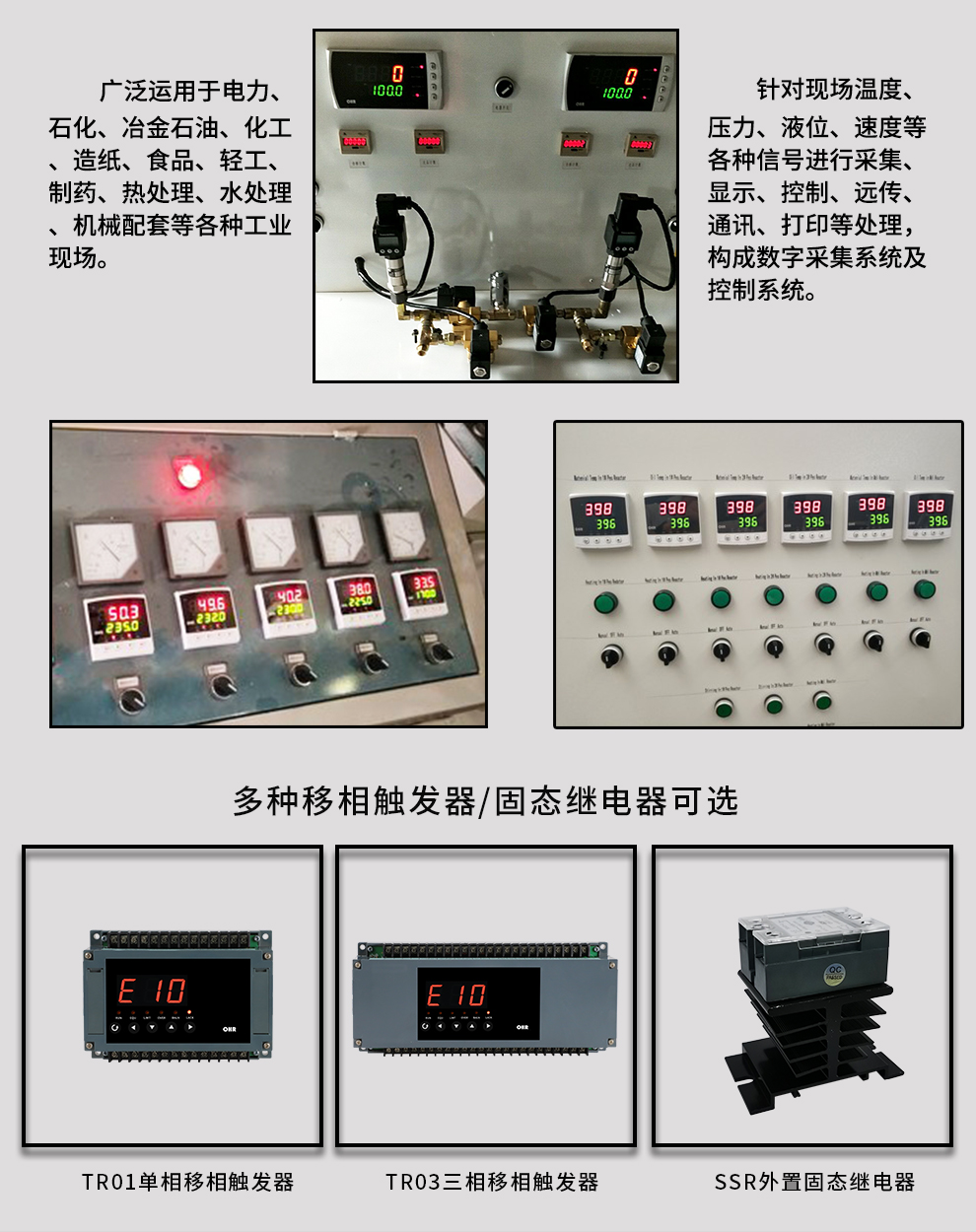 虹潤公司是專業(yè)生產(chǎn)移相觸發(fā)器的國家專精特新“小巨人”企業(yè),生產(chǎn)的移相觸發(fā)器,具有采用光電隔離設(shè)計,自動同步功能,過流保護(hù)技術(shù),電源缺相檢測,信號超限報警等特點。產(chǎn)品獲得巡回檢測顯示方法及裝置、儀表殼體等2項國家發(fā)明專利,主持起草工業(yè)過程控制系統(tǒng)用模擬輸入兩位或多位輸出儀表、物聯(lián)網(wǎng)智能溫度儀表通用技術(shù)條件等2項國家標(biāo)準(zhǔn)以及通信系統(tǒng)多通道數(shù)據(jù)采集控制終端規(guī)范軍用標(biāo)準(zhǔn),參與國際5G標(biāo)準(zhǔn)制定,取得外置移相觸發(fā)器等2項相關(guān)軟件著作權(quán)。產(chǎn)品廣泛應(yīng)用于工業(yè)溫控、電極控制、航天軍工、電爐溫控、食品醫(yī)藥等諸多領(lǐng)域。