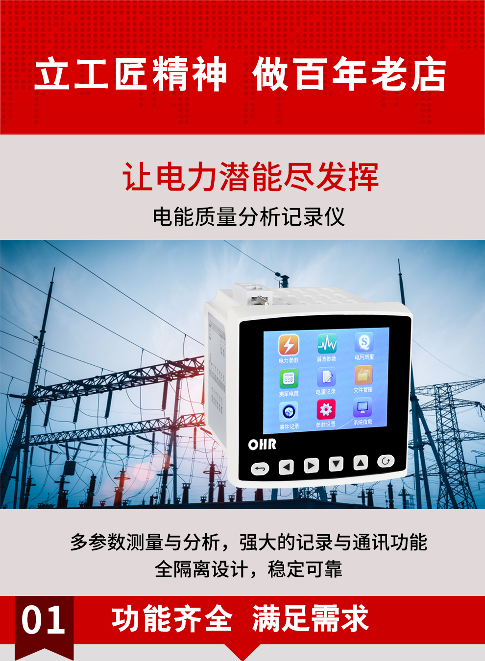 虹潤公司是專業(yè)生產(chǎn)電能質(zhì)量監(jiān)測裝置的國家專精特新“小巨人”企業(yè)。生產(chǎn)的電能質(zhì)量分析記錄儀,具有大屏彩顯,數(shù)據(jù)記錄與轉(zhuǎn)存,多電力參數(shù)測量,電網(wǎng)質(zhì)量分析, RS485/以太網(wǎng)通訊等特點。產(chǎn)品獲得基于DCS技術(shù)的盤裝式三相電量表、一種交流信號變送器、交直流信號轉(zhuǎn)換電路等3項國家發(fā)明專利,主持起草物聯(lián)網(wǎng)智能記錄儀表通用技術(shù)條件、物聯(lián)網(wǎng)電流變送器規(guī)范等2項國家標準,以及直流漏電流傳感器規(guī)范、通信系統(tǒng)多通道數(shù)據(jù)采集控制終端規(guī)范等2項軍用標準,參與國際5G標準制定,取得電能質(zhì)量分析記錄儀等3項相關(guān)軟件著作權(quán)。產(chǎn)品廣泛應(yīng)用于電力、冶金、化工、水泥、造紙、新能源、基礎(chǔ)設(shè)施等用電密集行業(yè)。