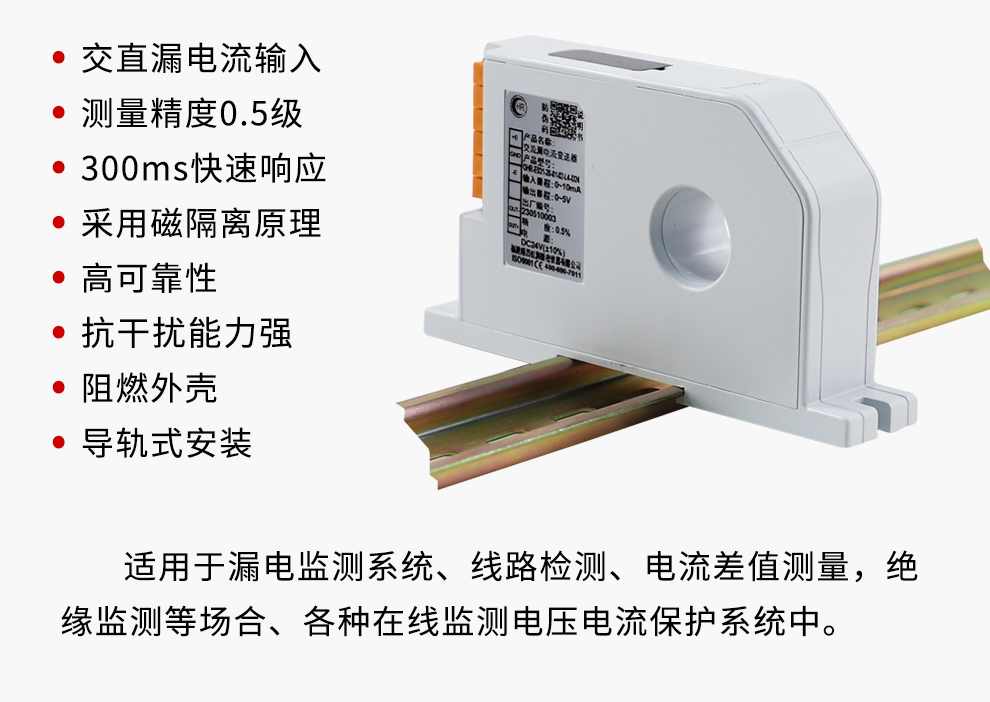 虹潤公司是專業(yè)生產(chǎn)電流傳感器的國家專精特新“小巨人”企業(yè)。生產(chǎn)的交流/直流漏電流變送器,具有交直漏電電流輸入、高精準(zhǔn)測量、響應(yīng)速度快、高抗干擾、全隔離設(shè)計等特點。產(chǎn)品獲得一種交流信號變送器、交直流信號轉(zhuǎn)換電路、基于DCS技術(shù)的盤裝式三相電量表等3項國家發(fā)明專利,主持起草工業(yè)過程控制系統(tǒng)用模擬輸入兩位或多位輸出儀表國家標(biāo)準(zhǔn),直流漏電流傳感器規(guī)范、通信系統(tǒng)多通道數(shù)據(jù)采集控制終端規(guī)范等2項軍用標(biāo)準(zhǔn),以及現(xiàn)場設(shè)備集成等5項智能制造國家標(biāo)準(zhǔn),參與國際5G標(biāo)準(zhǔn)制定。產(chǎn)品廣泛應(yīng)用于工業(yè)自動化、電力、新能源、科研實驗基礎(chǔ)設(shè)施等需要電力參數(shù)監(jiān)測的領(lǐng)域。