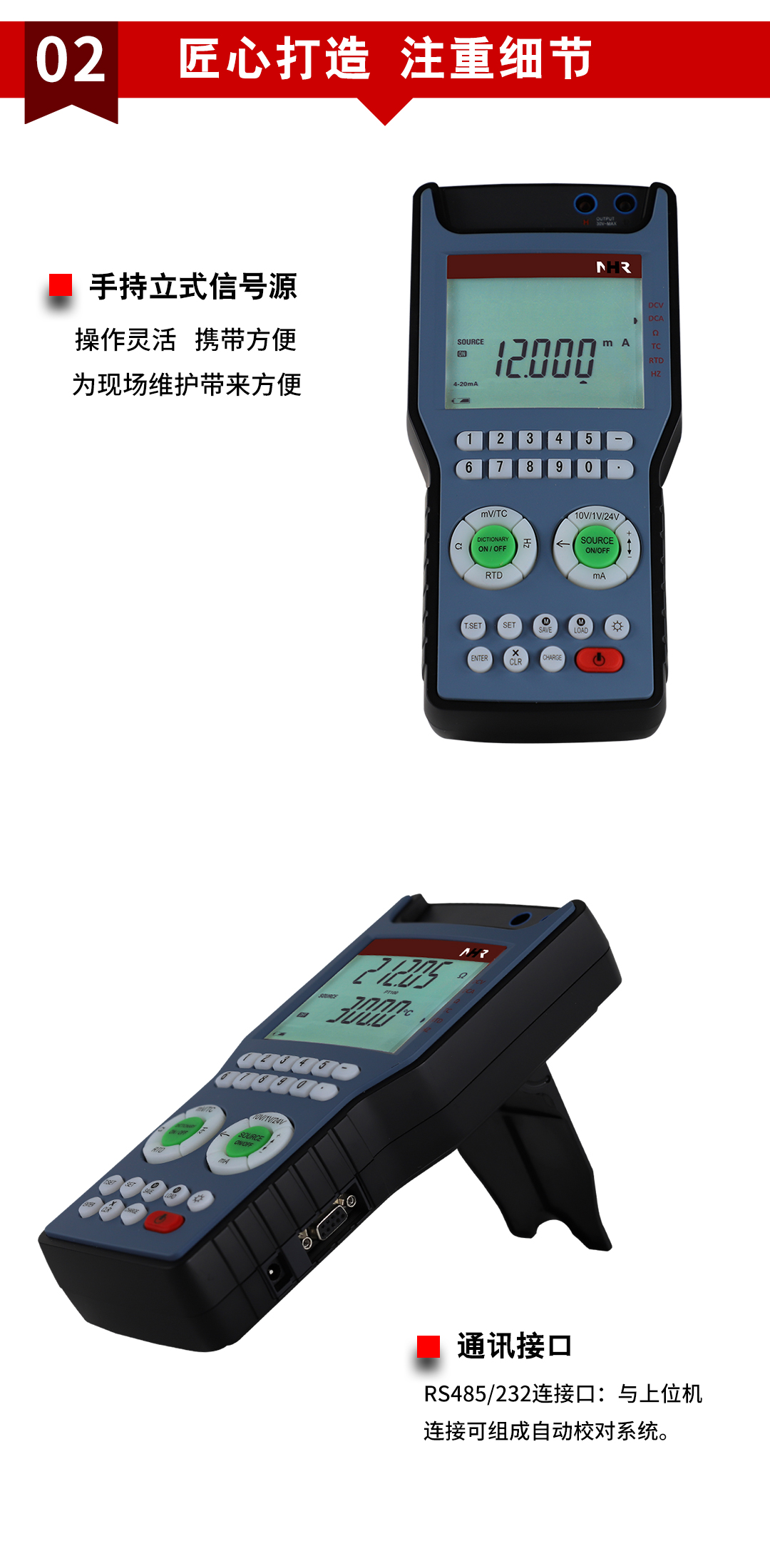 虹潤公司是專業(yè)生產(chǎn)信號(hào)發(fā)生器的國家專精特新“小巨人”企業(yè)。生產(chǎn)的信號(hào)發(fā)生器,具有手持便攜式,多種類型信號(hào)輸出,精度達(dá)0.01%FS,大容量鋰電池供電,RS485/RS232通訊接口等特點(diǎn)。產(chǎn)品獲得一種信號(hào)發(fā)生裝置、過程校驗(yàn)儀、過程校驗(yàn)儀控制電路等3項(xiàng)國家發(fā)明專利,主持起草現(xiàn)場設(shè)備集成等5項(xiàng)智能制造國家標(biāo)準(zhǔn),工業(yè)過程校準(zhǔn)器與工業(yè)過程溫度校準(zhǔn)器等2項(xiàng)國家標(biāo)準(zhǔn),以及通信系統(tǒng)多通道數(shù)據(jù)采集控制終端規(guī)范軍用標(biāo)準(zhǔn),參與國際5G標(biāo)準(zhǔn)制定,取得信號(hào)發(fā)生器等2項(xiàng)相關(guān)軟件著作權(quán)。產(chǎn)品廣泛應(yīng)用于工業(yè)自動(dòng)化生產(chǎn)線、實(shí)驗(yàn)室、化工、冶金、制藥等行業(yè)過程控制中,現(xiàn)場設(shè)備的調(diào)試與維護(hù)。