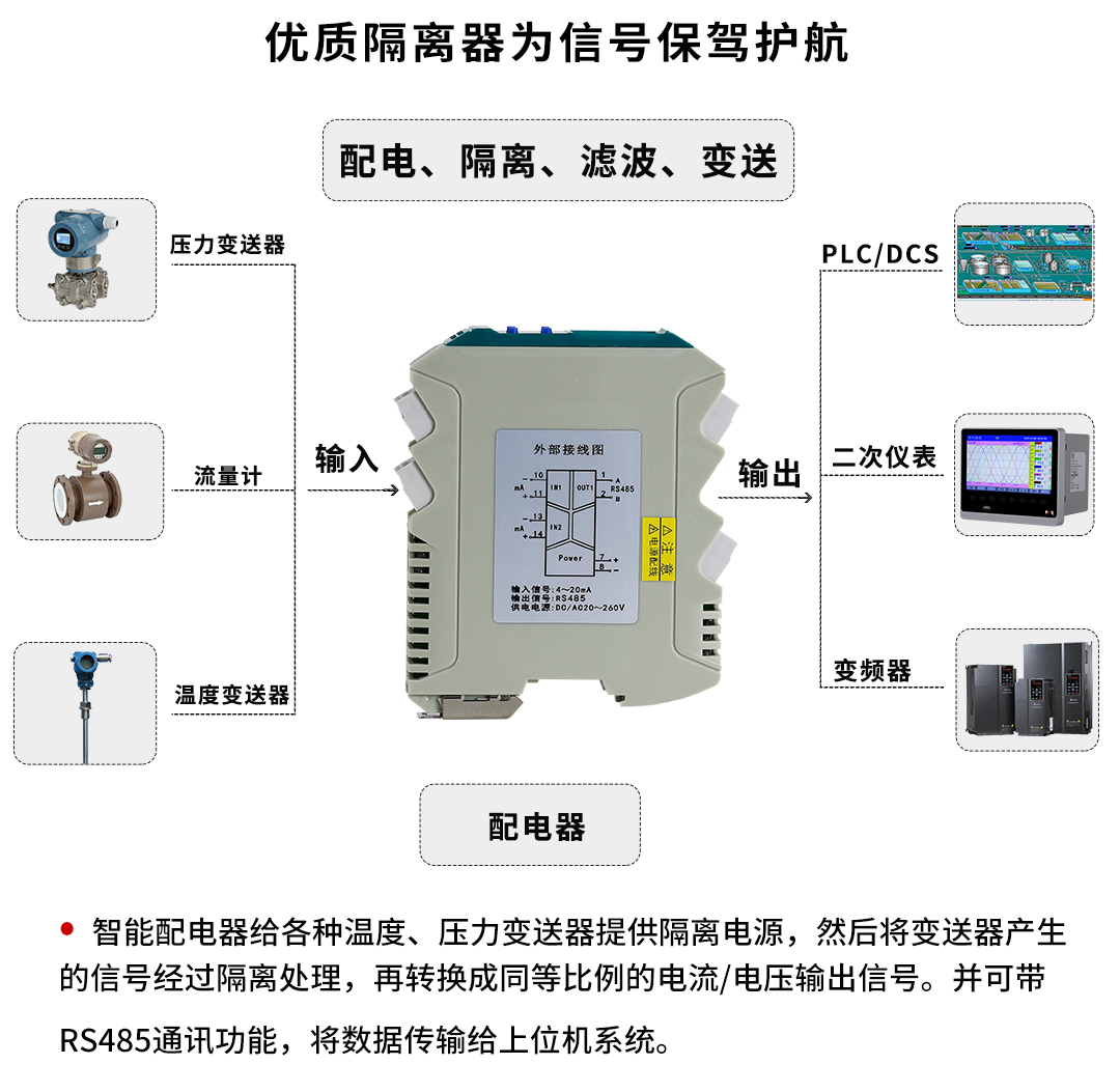 虹潤公司是專業(yè)生產(chǎn)隔離器的國家專精特新“小巨人”企業(yè)。生產(chǎn)的導(dǎo)軌式智能配電器,具有配接二三線制變送器,輸入輸出電源三隔離,響應(yīng)時間快,傳輸精度0.1%FS,支持485通訊輸出等特點(diǎn)。產(chǎn)品獲得信號隔離器、一種二端子模塊、無源信號隔離器等3項(xiàng)國家發(fā)明專利,主持起草現(xiàn)場設(shè)備工具(FDT)接口規(guī)范、工業(yè)過程測量和控制系統(tǒng)用隔離式安全柵、工業(yè)過程測量和控制系統(tǒng)用配電器等3項(xiàng)國家標(biāo)準(zhǔn),以及通信系統(tǒng)多通道數(shù)據(jù)采集控制終端規(guī)范軍用標(biāo)準(zhǔn)。參與國際5G標(biāo)準(zhǔn)制定。,取得智能隔離器等2項(xiàng)相關(guān)軟件著作權(quán)。產(chǎn)品廣泛應(yīng)用于石油、化工,冶金、電力、食品、光伏能源、污水處理等需要電隔離的工業(yè)自動化控制系統(tǒng)。