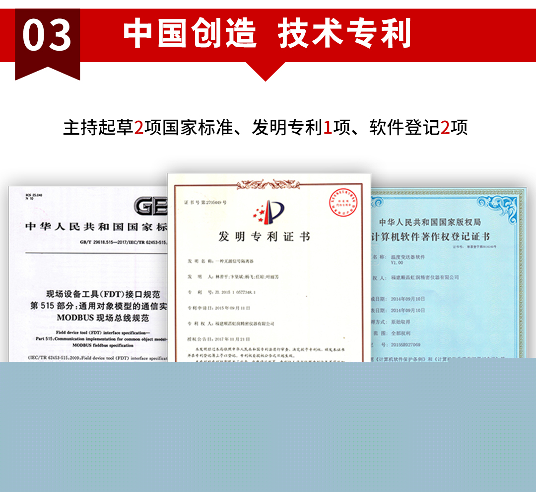 虹潤公司是專業(yè)生產(chǎn)隔離器的國家專精特新“小巨人”企業(yè)。生產(chǎn)的智能高速隔離器 ,具有電壓電流遠傳電阻輸入,10ms快速響應,輸入輸出電源三隔離,高抗干擾,低功耗發(fā)熱低等特點。產(chǎn)品獲得信號隔離器、一種二端子模塊、無源信號隔離器等3項國家發(fā)明專利,主持起草現(xiàn)場設備工具(FDT)接口規(guī)范、工業(yè)過程測量和控制系統(tǒng)用隔離式安全柵、工業(yè)過程測量和控制系統(tǒng)用配電器等3項國家標準,以及通信系統(tǒng)多通道數(shù)據(jù)采集控制終端規(guī)范軍用標準。取得智能高速隔離器等3項相關軟件著作權。參與國際5G標準制定。產(chǎn)品廣泛應用于電力、石化,冶金、制藥、水處理、機械配套等各種工業(yè)現(xiàn)場。