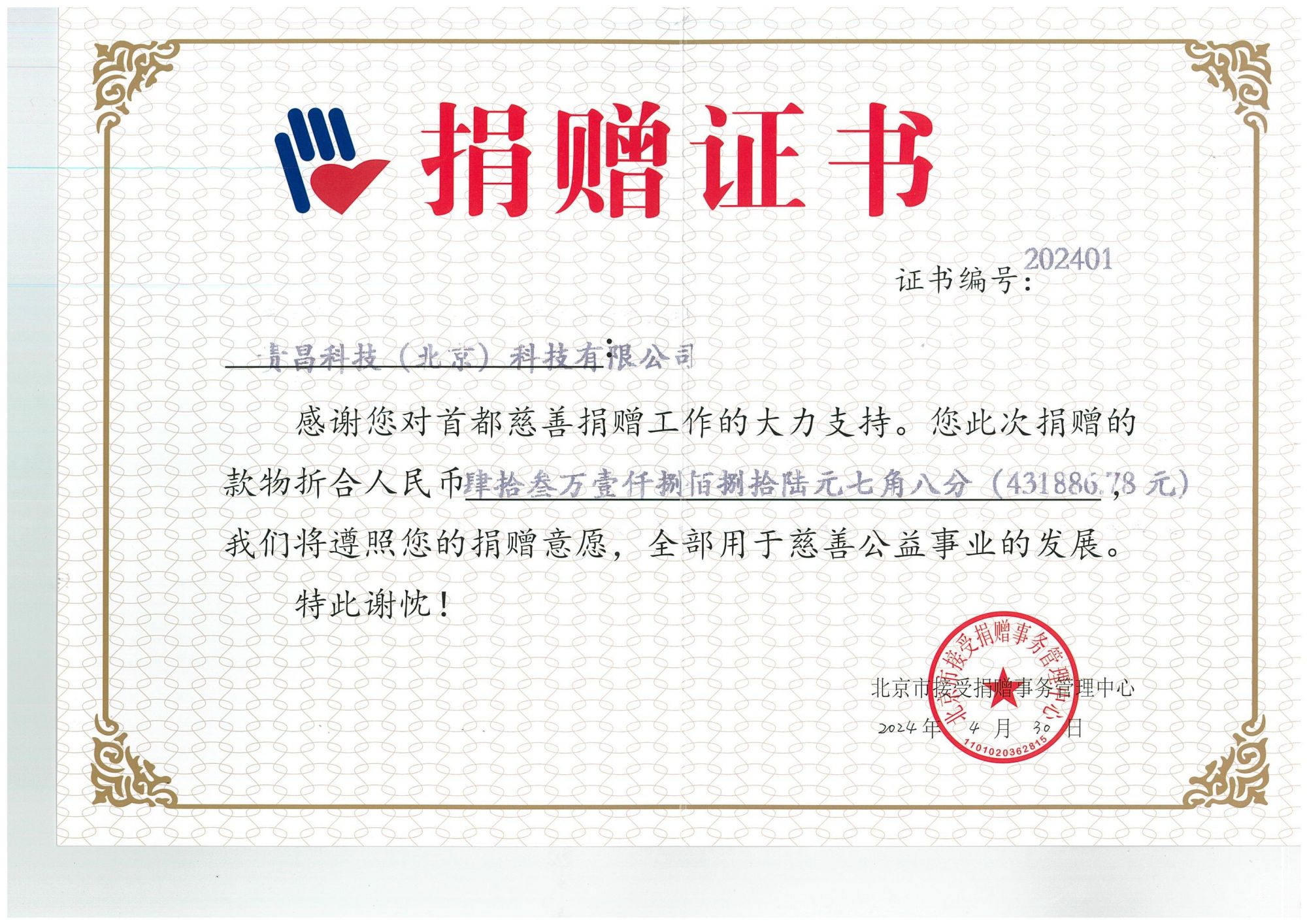 支持豐臺(tái)區(qū)慈善助殘事業(yè),捐助豐臺(tái)區(qū)溫馨精康園物資431886.78元;