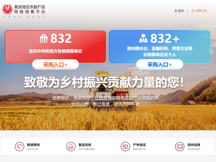 “832平臺”是在財政部、農(nóng)業(yè)農(nóng)村部、國家鄉(xiāng)村振興局等部門指導(dǎo)下建設(shè)和運營的線上采購平臺,專門銷售來自脫貧地區(qū)的農(nóng)副產(chǎn)品,旨在通過“互聯(lián)網(wǎng)+消費幫扶”模式,推動脫貧地區(qū)產(chǎn)業(yè)升級和農(nóng)戶增收。平臺上線以來,已成為連接脫貧地區(qū)與全國消費市場的重要橋梁。