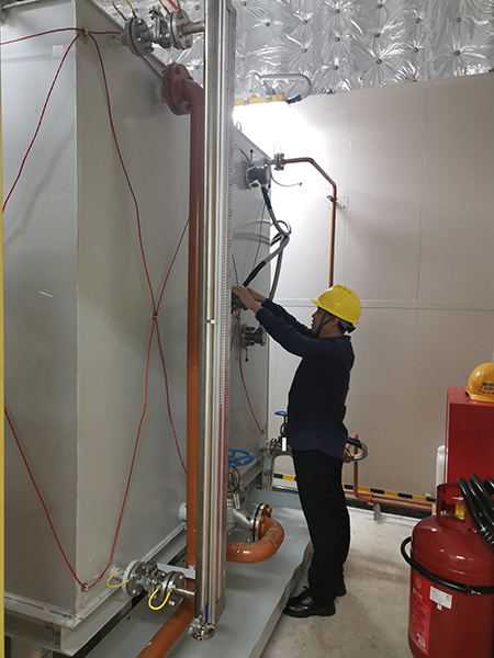 11月7日凌晨6點,東方剛露出魚肚白。孫利勤踏著晨露,帶著虹潤產品和測試安裝設備馬不停蹄來到了珠海港口,經過2個多小時的海上跋涉,終于到了海上風電升壓站現場,對于客戶提到的技術要求,孫利勤先是對現場環(huán)境進行測試和判斷,與客戶認真溝通制定了技術應用方案,并于次日成功安裝。虹潤儀表現場表現良好,對海上升壓站TC690L柴油發(fā)電設備液位控制精度高且運行穩(wěn)定,得到了客戶的好評。解決了客戶的技術需求,虹潤人的心也放下了,這次跨越大海的技術服務終于不辱使命。