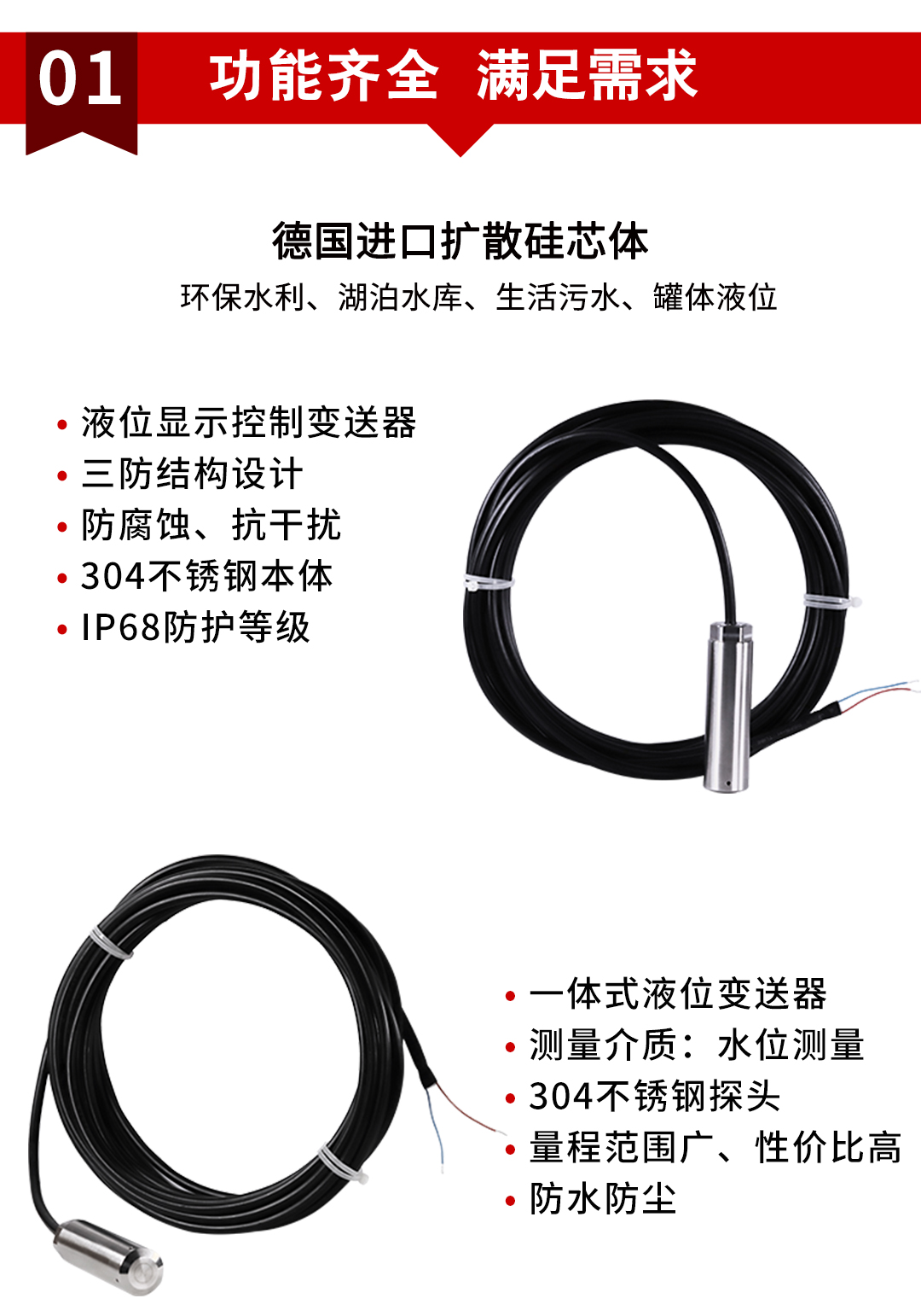 虹潤公司是專業(yè)生產(chǎn)液位變送器的國家專精特新“小巨人”企業(yè),生產(chǎn)的投入式液位變送器,具有采用進口芯體,精準測量,過壓保護,高抗干擾,IP68防護等級等特點。產(chǎn)品獲得一種數(shù)字顯示低功耗壓力表、一種信號發(fā)生器裝置等2項國家發(fā)明專利,主持起草工業(yè)過程控制系統(tǒng)用模擬輸入兩位或多位輸出儀表、工業(yè)過程測量和控制系統(tǒng)用壓力/差壓變送器等2項國家標準,通信系統(tǒng)多通道數(shù)據(jù)采集控制終端規(guī)范軍用標準,以及現(xiàn)場設備集成等5項智能制造國家標準。參與國際5G標準制定,取得數(shù)顯壓力表等2項相關軟件著作權。產(chǎn)品廣泛應用于電力、冶金、農(nóng)業(yè)、食品、制藥、水處理等對液位監(jiān)測需求的行業(yè)領域。