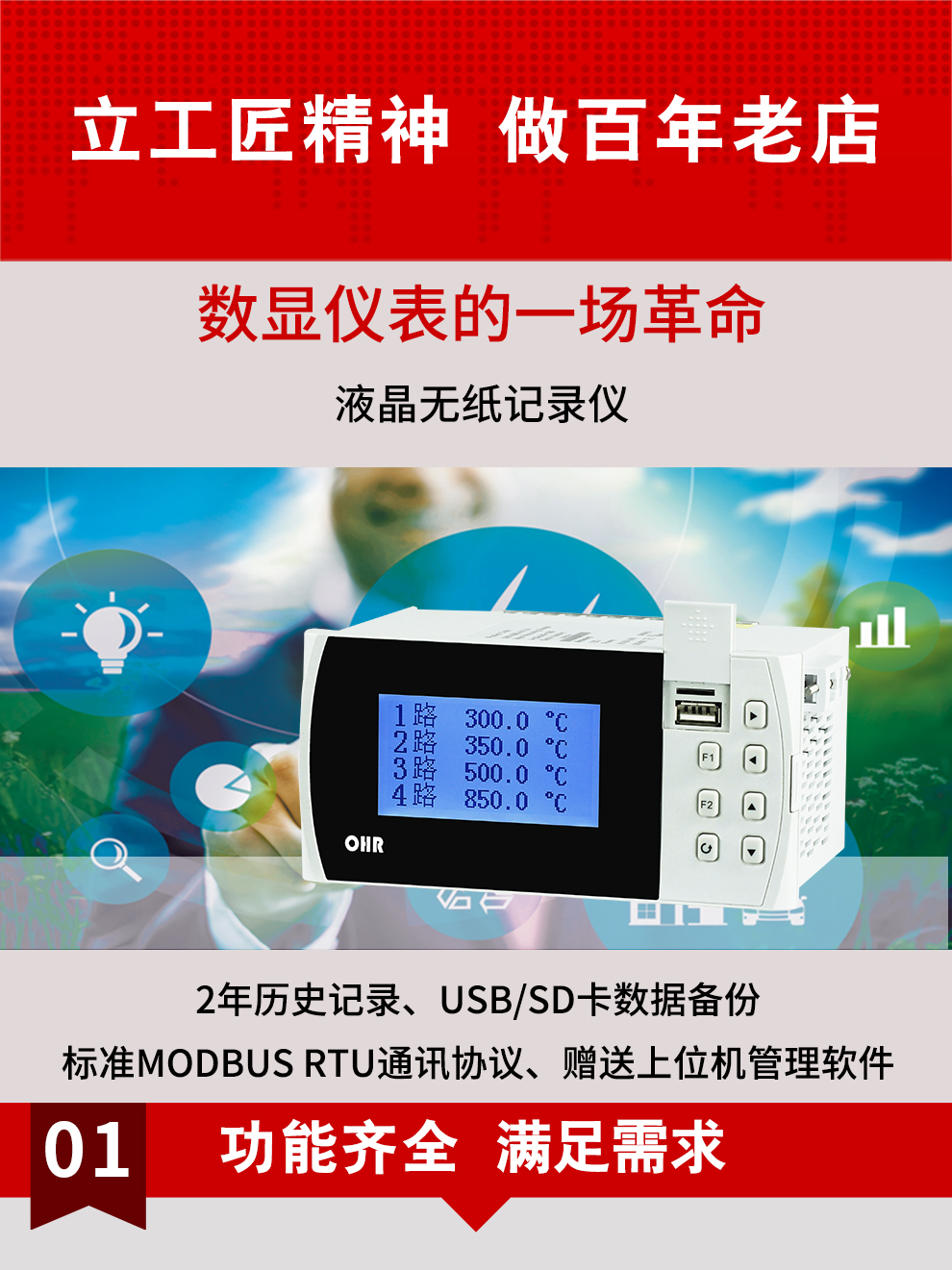 OHR-G100/G100R系列液晶漢顯控制儀/無紙記錄儀