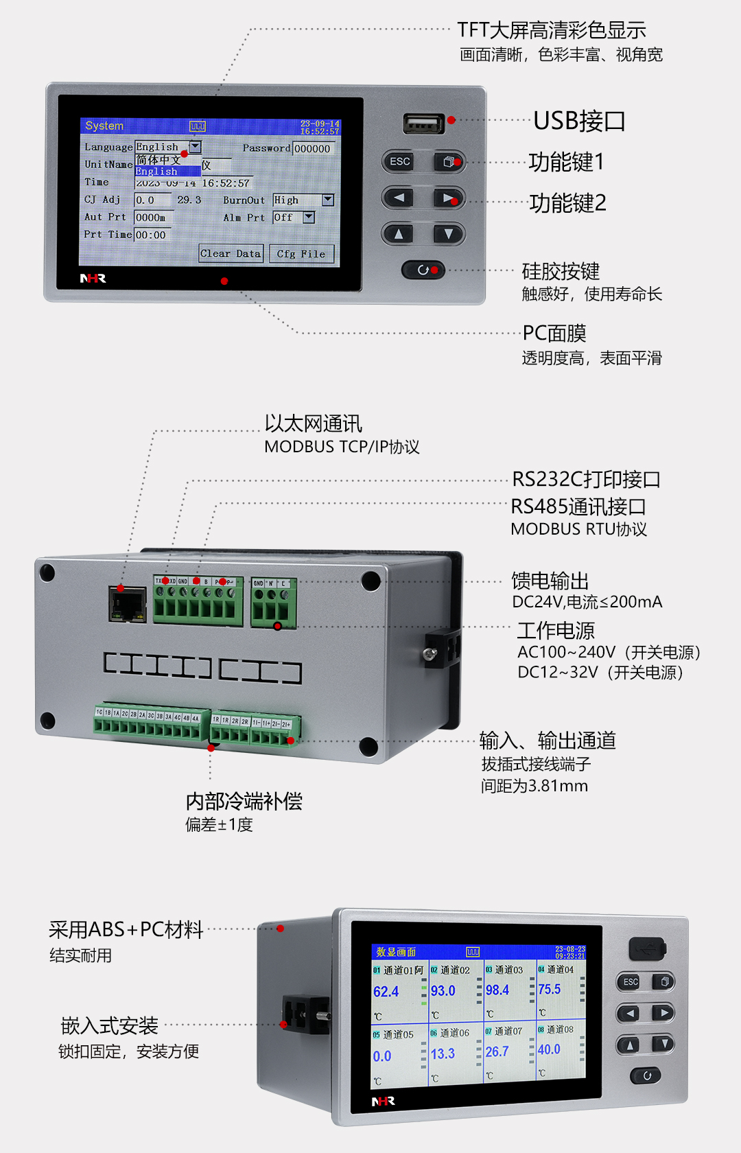 NHR-7100T系列彩色無(wú)紙記錄儀