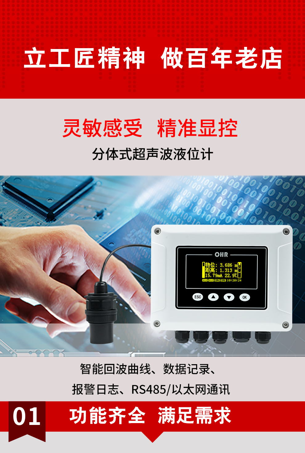 虹潤公司是專業(yè)生產(chǎn)超聲波液位計的國家專精特新“小巨人”企業(yè)。生產(chǎn)的分體式超聲波液位計,具有數(shù)據(jù)記錄與轉(zhuǎn)存,智能回波曲線顯示,RS485/以太網(wǎng)通訊,報警繼電器輸出,報警日志等特點(diǎn)。產(chǎn)品獲得無紙記錄儀以及一種信號發(fā)生裝置等2項(xiàng)國家發(fā)明專利,主持起草物聯(lián)網(wǎng)智能記錄儀表以及工業(yè)過程控制系統(tǒng)用模擬輸入兩位或多位輸出儀表等2項(xiàng)國家標(biāo)準(zhǔn),以及通信系統(tǒng)多通道數(shù)據(jù)采集控制終端規(guī)范軍用標(biāo)準(zhǔn),參與國際5G標(biāo)準(zhǔn)制定,取得超聲波液位計等2項(xiàng)相關(guān)軟件著作權(quán)。產(chǎn)品廣泛石化、電力、食品、污水處理、市政設(shè)施等諸多領(lǐng)域。