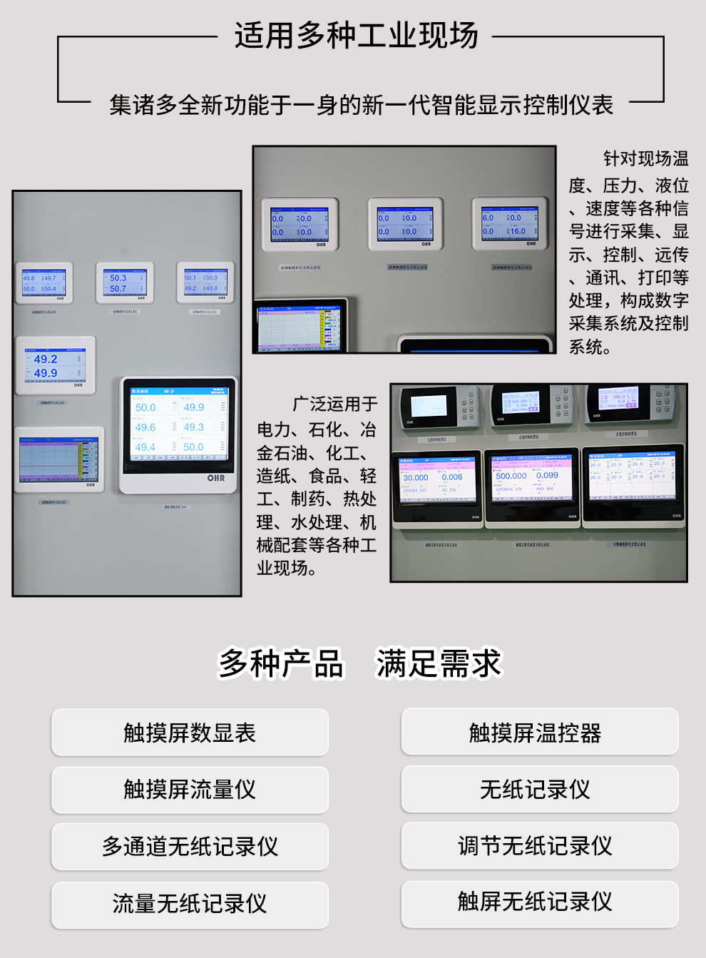 虹潤(rùn)公司是專業(yè)生產(chǎn)無(wú)紙記錄儀的國(guó)家專精特新“小巨人”企業(yè)。生產(chǎn)的觸摸屏溫控器,具有觸摸大屏顯示,真正人工智能算式,無(wú)需人工整定參數(shù),控制精度達(dá)士0.1°C, RS485/以太網(wǎng)通訊,5/7/9英寸可選等特點(diǎn)。產(chǎn)品獲得智能化控制器、人工智能調(diào)節(jié)器及調(diào)節(jié)方法、模糊PID控制儀及控制方法、平板無(wú)紙記錄儀、巡回檢測(cè)顯示方法及裝置等5項(xiàng)國(guó)家發(fā)明專利,主持起草物聯(lián)網(wǎng)智能記錄儀表通用技術(shù)條件、物聯(lián)網(wǎng)智能溫度儀表通用技術(shù)條件、工業(yè)過(guò)程測(cè)量和控制系統(tǒng)用智能調(diào)節(jié)器等3項(xiàng)國(guó)家標(biāo)準(zhǔn),通信系統(tǒng)多通道數(shù)據(jù)采集控制終端規(guī)范軍用標(biāo)準(zhǔn),以及空間數(shù)據(jù)與信息數(shù)據(jù)傳輸系統(tǒng)等2項(xiàng)航天標(biāo)準(zhǔn),參與國(guó)際5G標(biāo)準(zhǔn)制定,取得觸摸屏彩色調(diào)節(jié)無(wú)紙記錄儀等3項(xiàng)相關(guān)軟件著作權(quán)。產(chǎn)品廣泛應(yīng)用于電力、石化、冶金、化工、食品、制藥、熱處理、水處理、機(jī)械配套等諸多領(lǐng)域。
